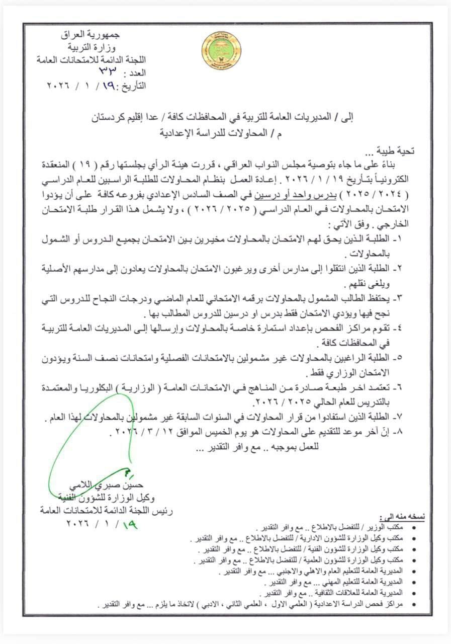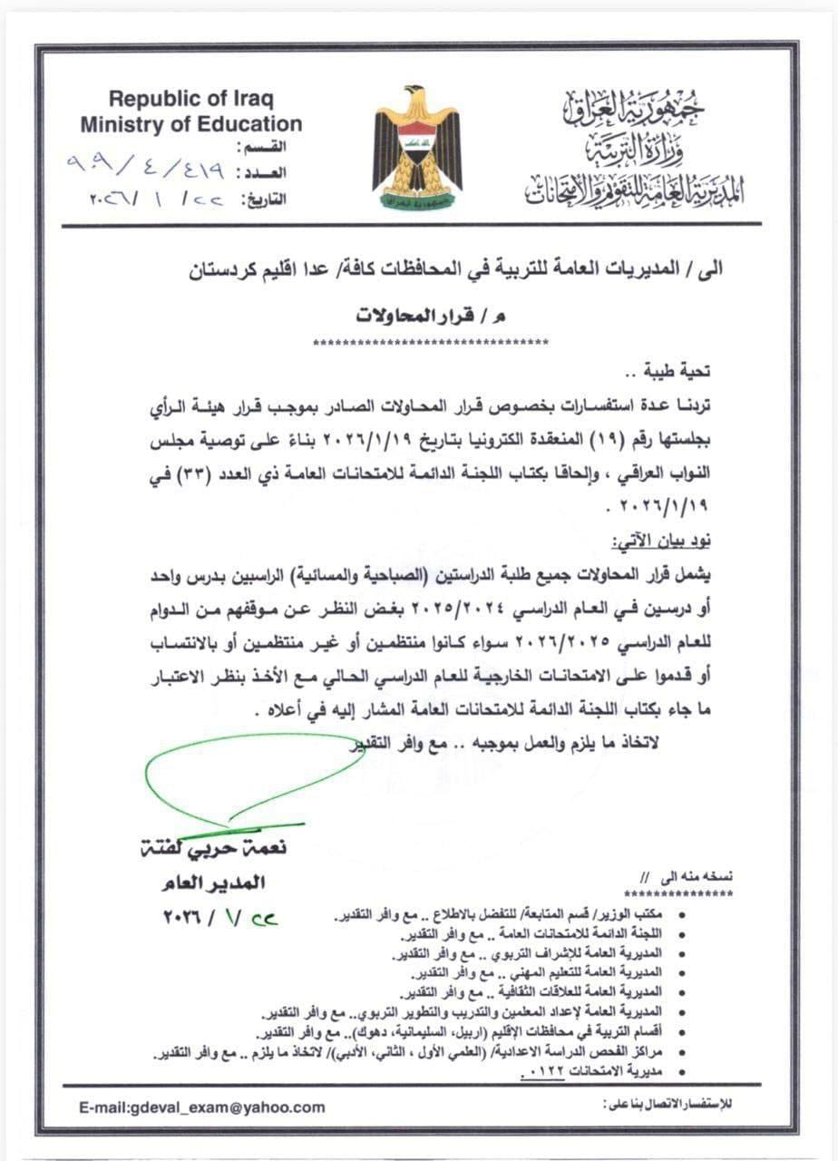 بالوثيقة.. التربية: قرار المحاولات يُطبق بغض النظر عن موقف الطالب من الدوام للعام الدراسي.